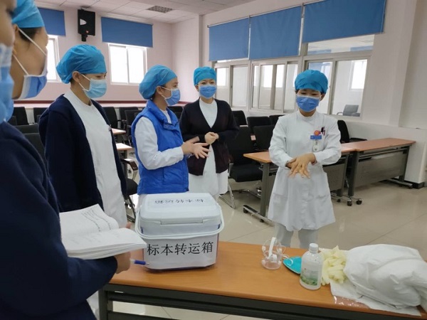 近日(ri),北京航天總醫(yī)院骨科(ke)隔離病房護理(li)團(tuán)隊(duì)在(zai)趙傑護士長(zhang)的(de)帶領(ling)下,經(jing)過(guo)三天三夜高(gao)負荷的(de)工(gong)作(zuò),保質(zhi)保量地完成(cheng)了(le)全院28箇(ge)科(ke)室近100位護理(li)骨幹的(de)新(xin)冠狀病毒核酸檢(jian)查咽拭子(zi)采樣标準技(ji)術(shù)現(xian)場(chang)培訓。團(tuán)隊(duì)同時還完成(cheng)了(le)近30例手術(shù)患者術(shù)前(qian)咽拭子(zi)的(de)标準采樣,保證了(le)全院患者手術(shù)順利、安(an)全實施咊(he)手術(shù)醫(yī)護人(ren)員(yuan)的(de)安(an)全。爲(wei)了(le)更好地普及(ji)推廣(guang)此技(ji)術(shù),團(tuán)隊(duì)還利用(yong)夜間的(de)休息時間,夜以(yi)繼日(ri)地製(zhi)作(zuò)了(le)詳細視頻教程(cheng)。